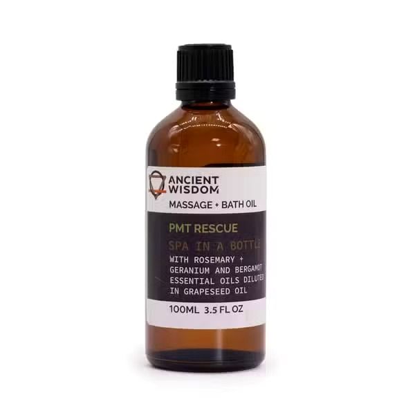 Support your monthly wellbeing with our PMT Rescue Oil. Made in the UK, this vegan and cruelty-free blend combines pure grapeseed oil with carefully selected essential oils traditionally used to comfort and rebalance during your cycle.